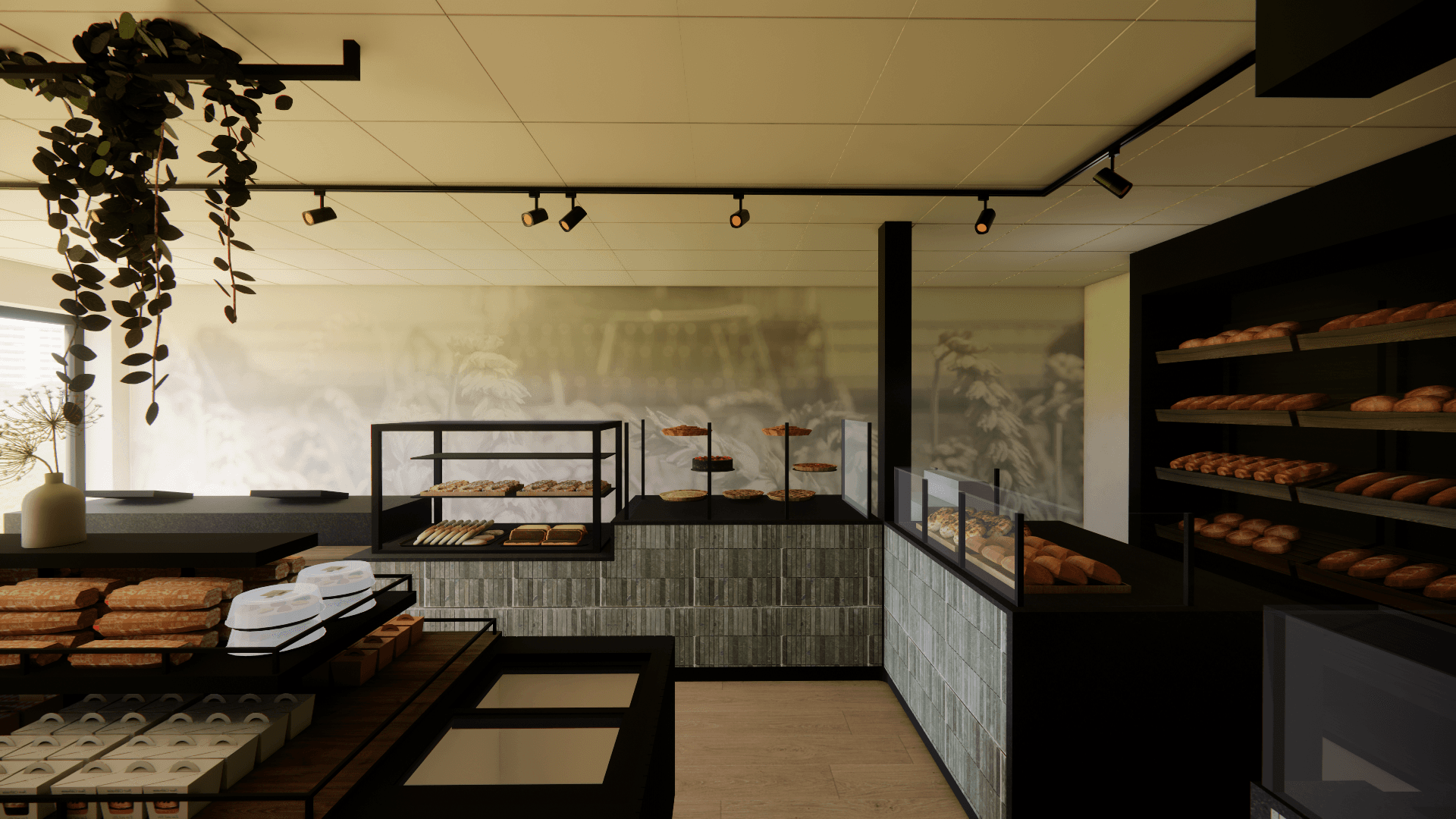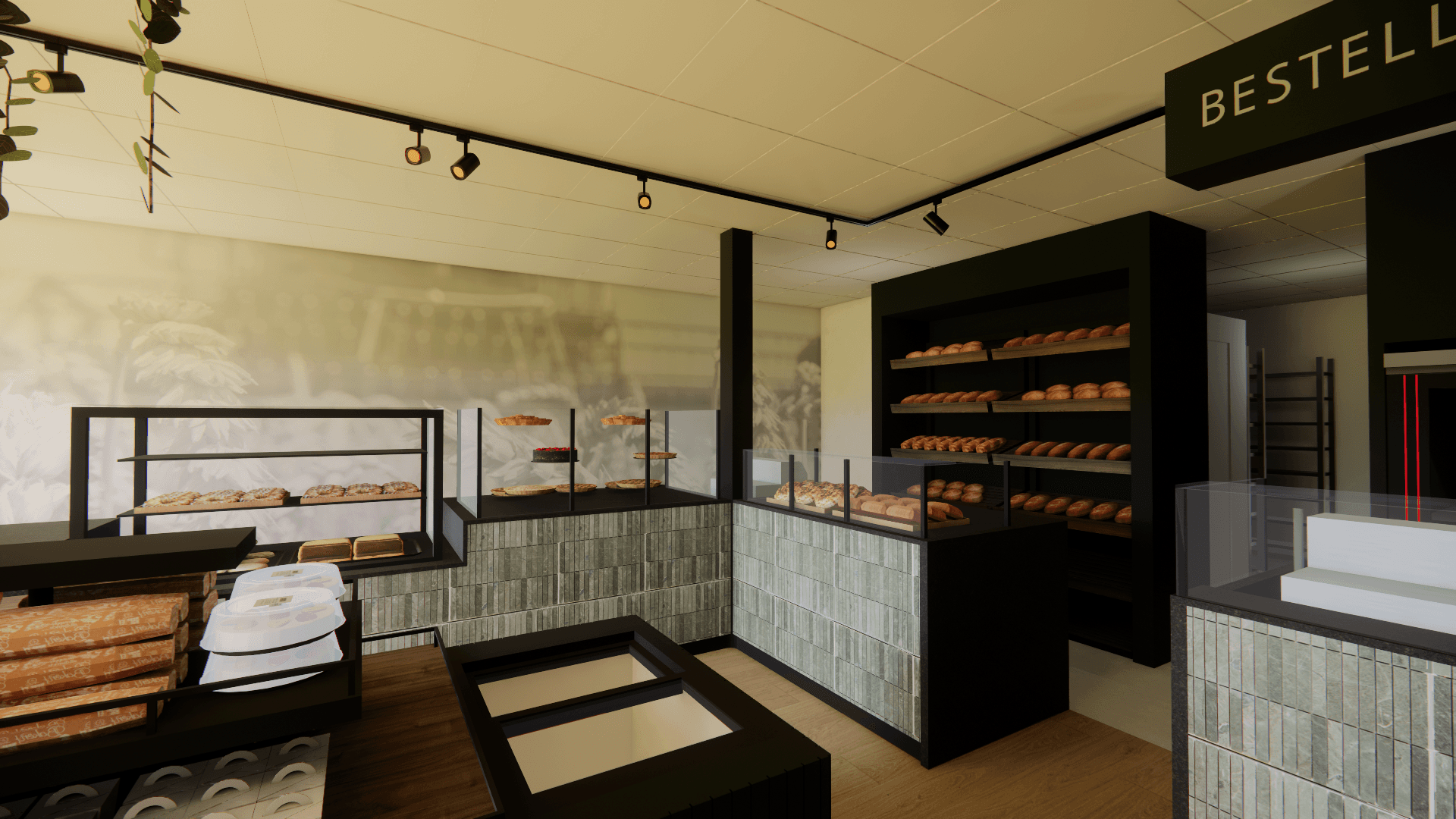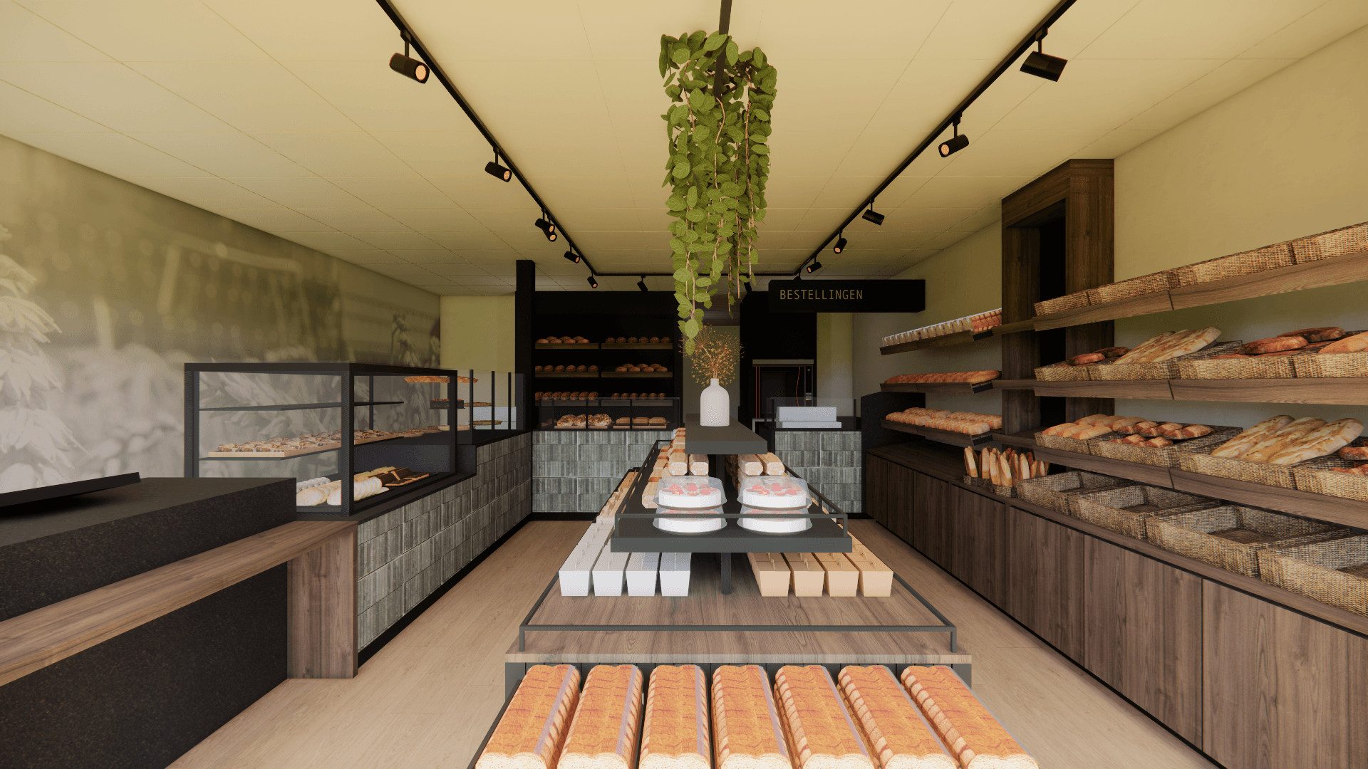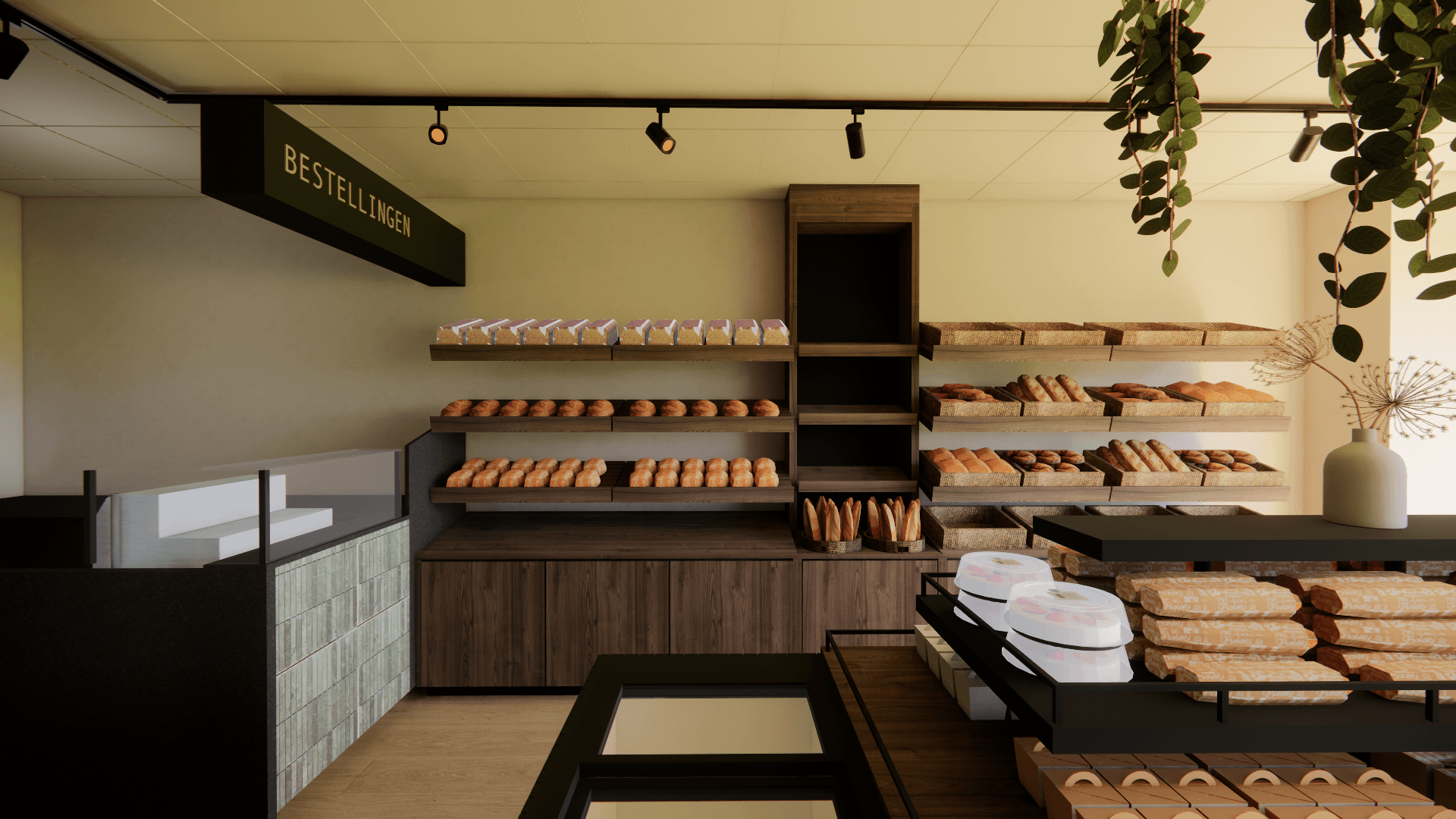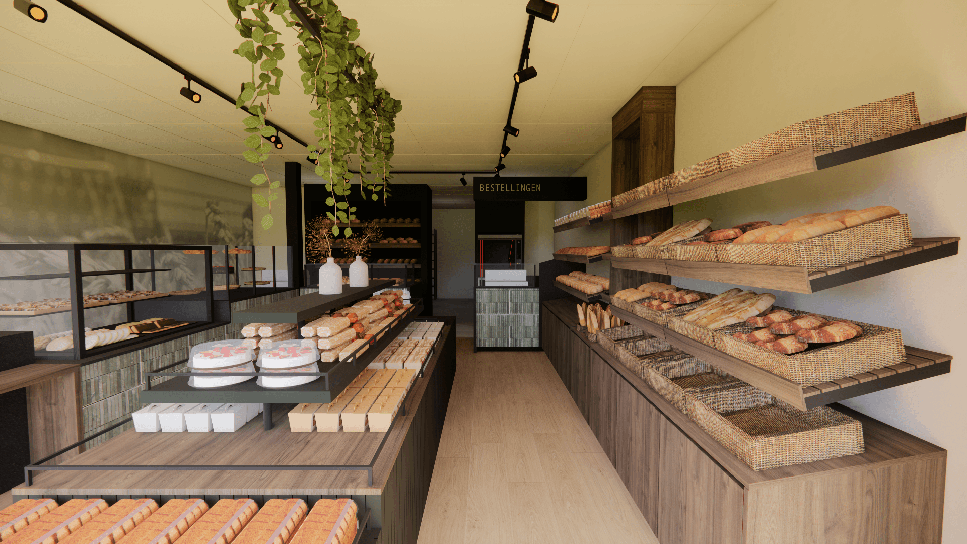 Wij ontwierpen een interieur dat warm en tijdloos aanvoelt, met een rustige basis en warme kleuren die de producten laten spreken. Tegelijkertijd hielden we rekening met alles wat er achter de schermen nodig is: koelingen, ovens, werkruimte en de praktische eisen van een bakkerij die elke dag op volle toeren draait. Het resultaat is een winkel die overzicht en sfeer combineert en waarin ambacht en beleving elkaar versterken.