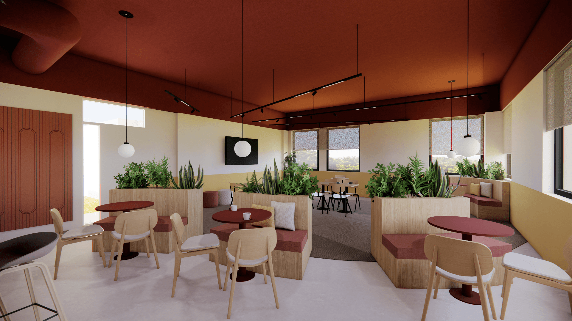 Voor Zesta Zorggroep ontwierpen we een multifunctionele community ruimte in hun eigen kantoorpand: een plek die de hele dag door meebeweegt met wat er nodig is. Even snel een koffie to-go, rustig lunchen, een overleg met collega’s, geconcentreerd werken of juist een presentatie met een grotere groep. Alles kan, zonder dat de ruimte onrustig of rommelig aanvoelt.