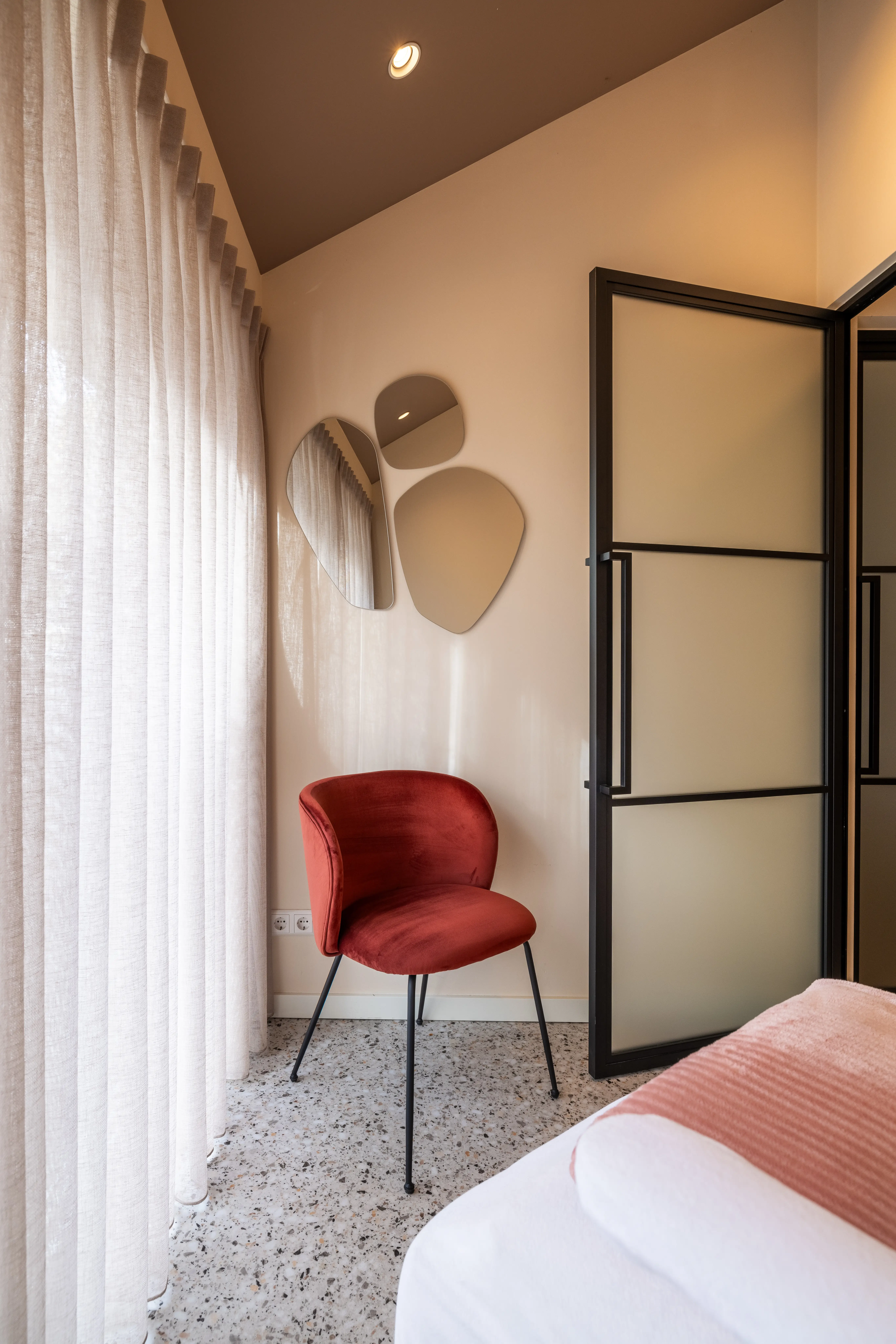 Voor een duidelijke scheiding tussen werk en privé kunnen klanten nu direct vanuit de voordeur naar de salon zonder door het woonhuis te lopen. Het interieur, met een warm en zacht kleurenpalet, zorgt voor een uitnodigende en comfortabele sfeer. Scramini Interieurbouw verzorgde het op maat gemaakte meubilair, dat het geheel perfect afmaakt.