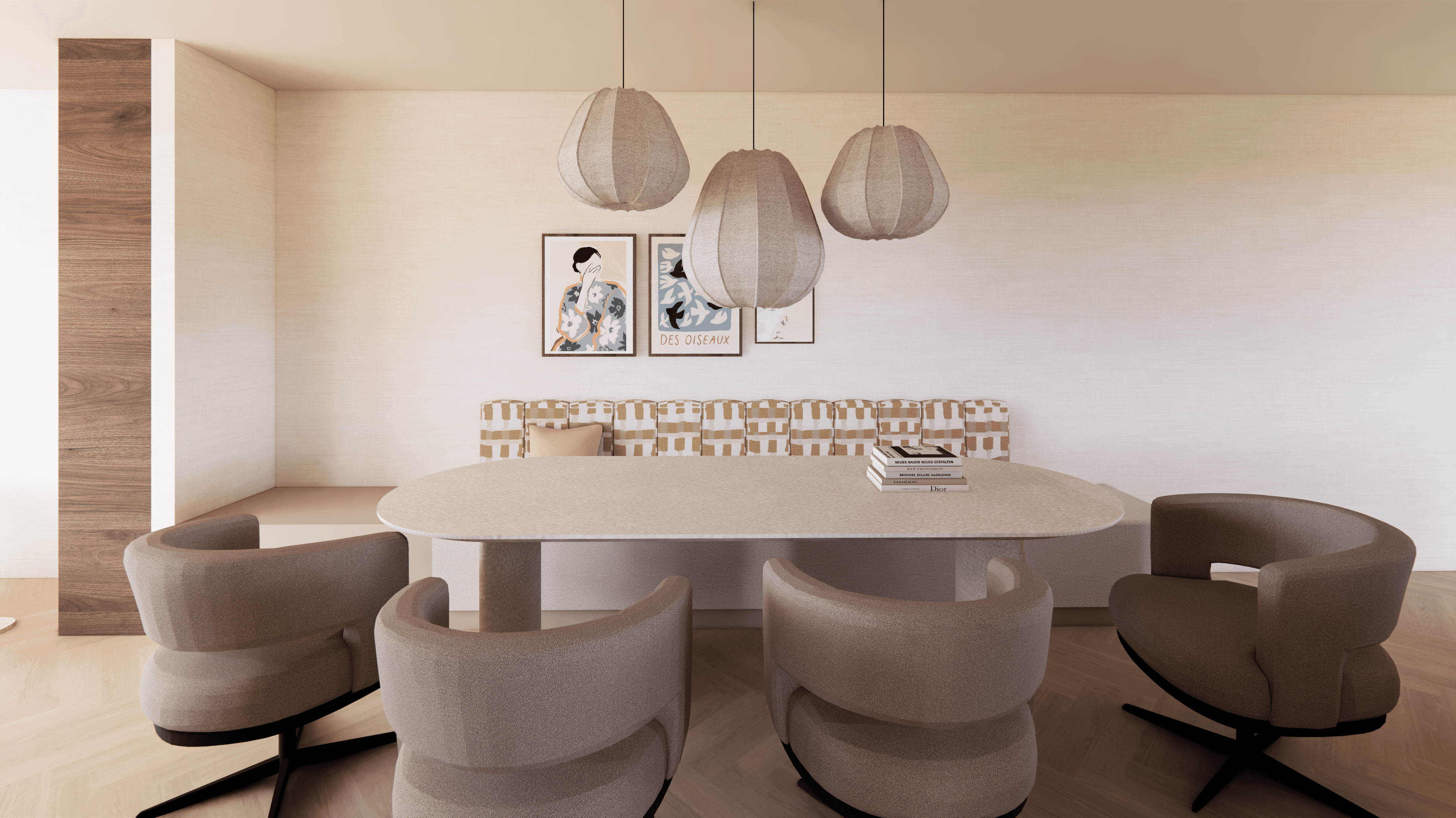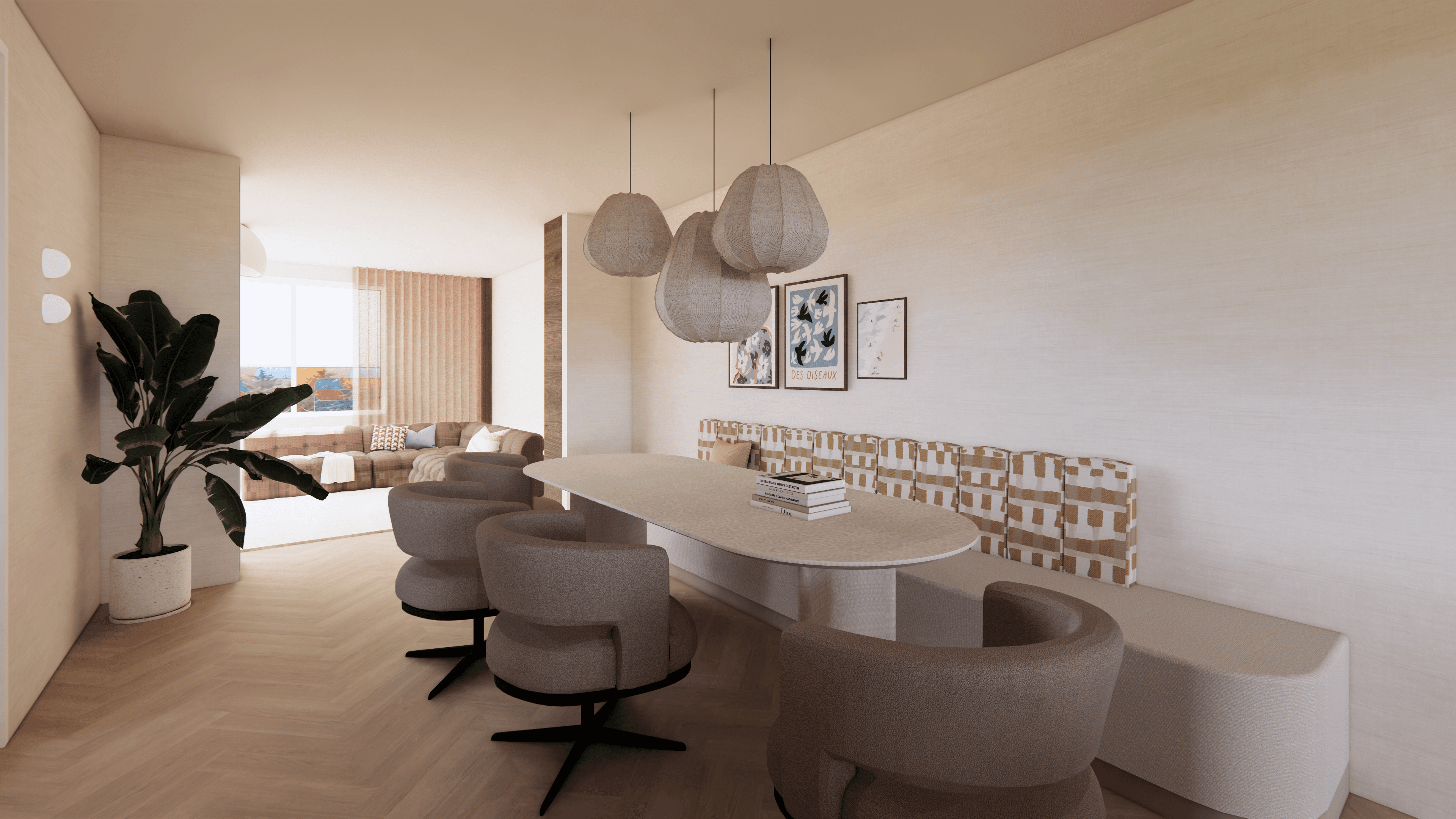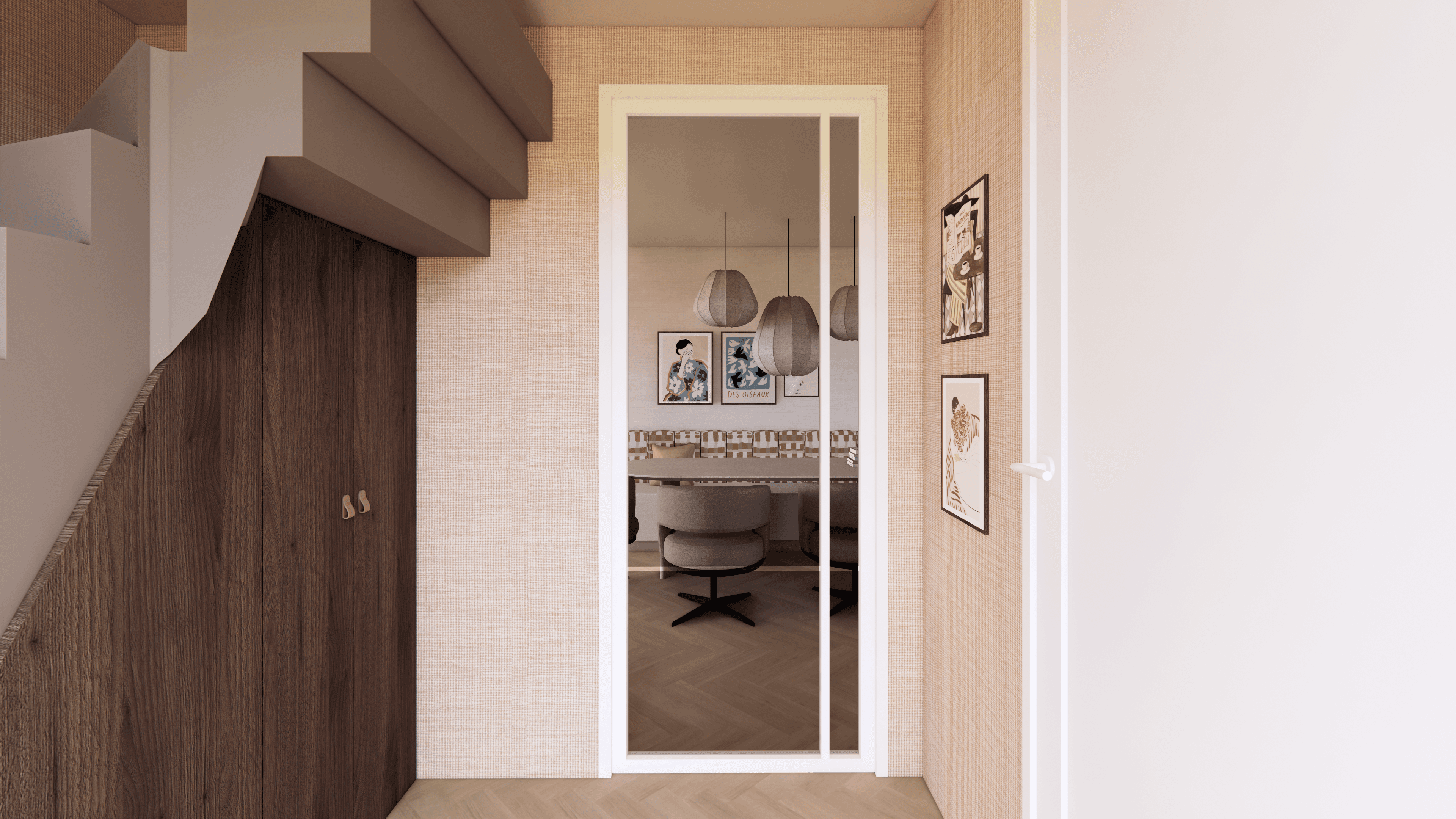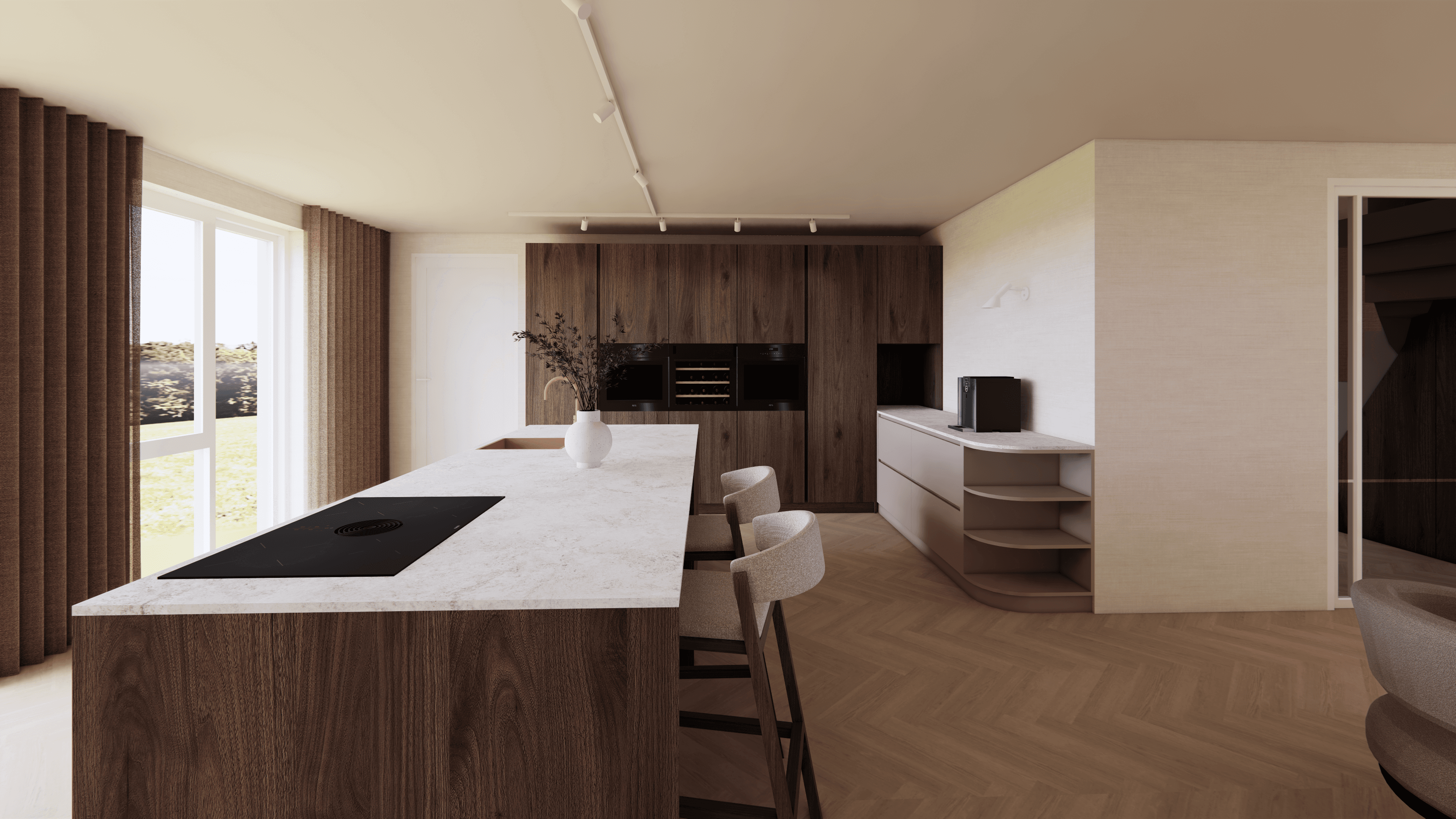 We werkten het interieur uit voor de volledige woning: de begane grond, de eerste verdieping en de zolder. Zo laten we niets aan toeval over en klopt het totaalplaatje straks van beneden tot boven. Van indeling en zichtlijnen tot materiaalkeuzes en sfeer, alles is op elkaar afgestemd.